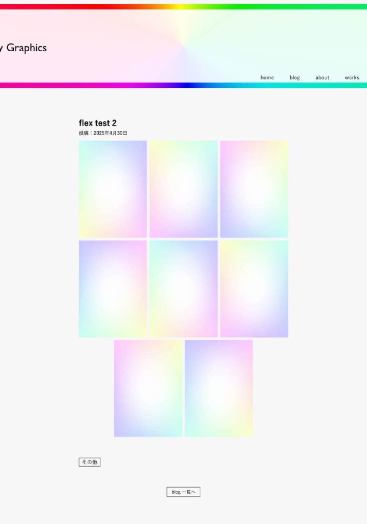 以前の仕事を掲載するページで、8個の画像を横並びにレイアウトしたいと思い、投稿ページを作成しました。ですがその時に、ブロックエディターの「横並び」のボックスは折り返しをしないものだと思いこんでしまい、うまくレイアウトできなかったため、簡単なCSSを書きました。